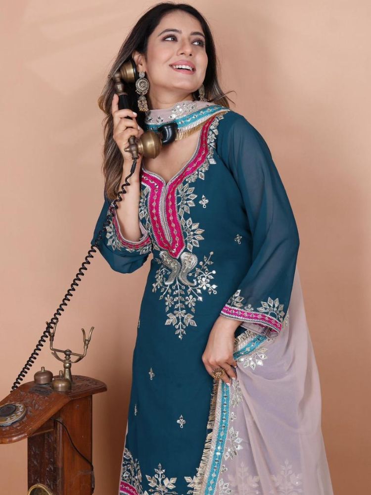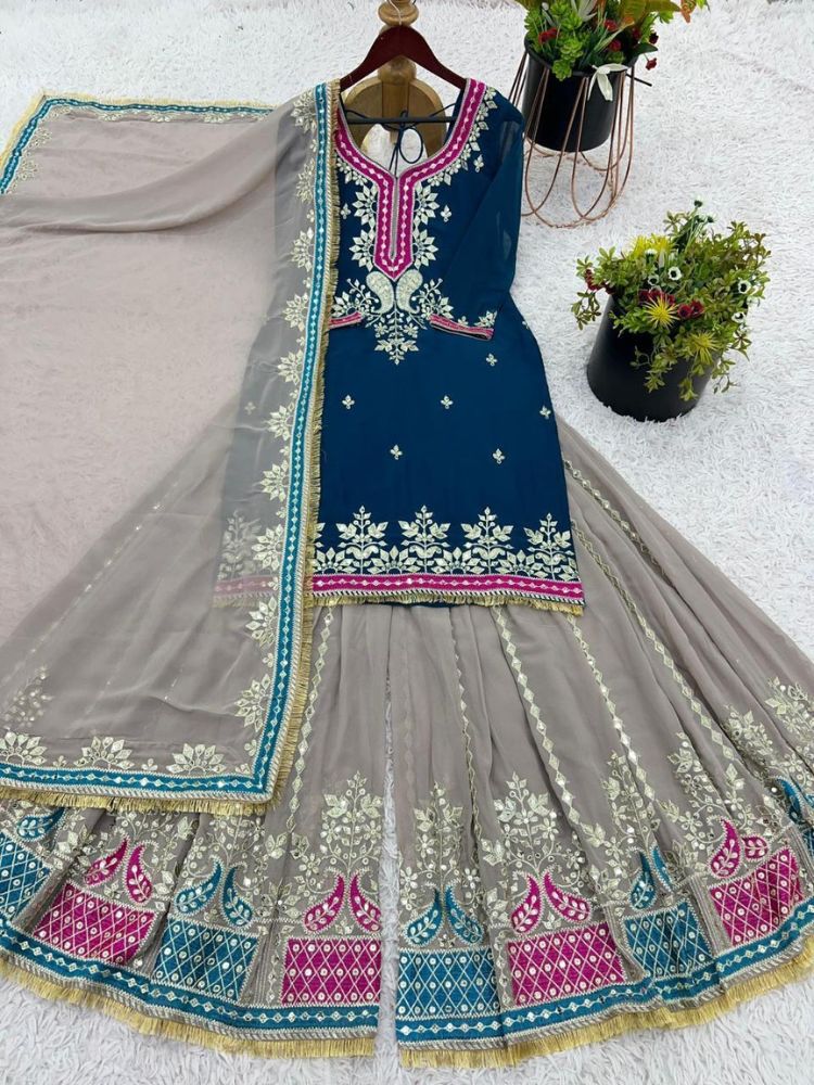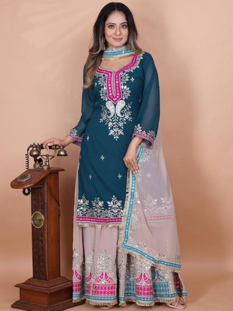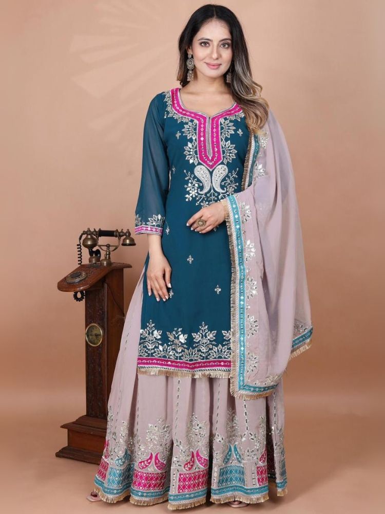 Blue Faux Georgette Top Sharara Dupatta – HRT4896 | Blue