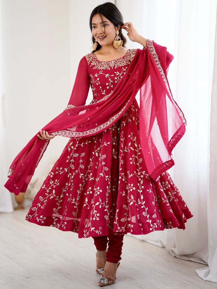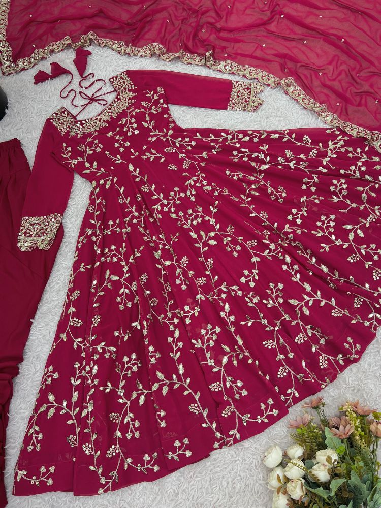 Pink Faux Georgette Gown – HRT4667 | Pink