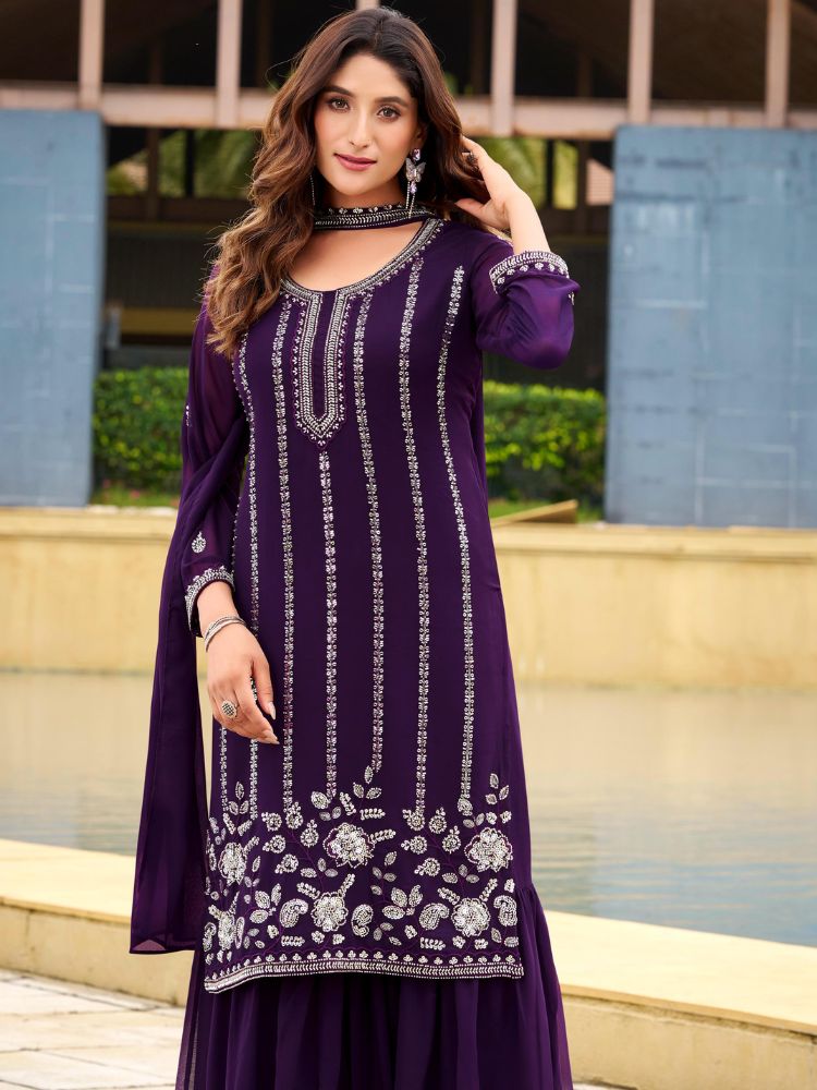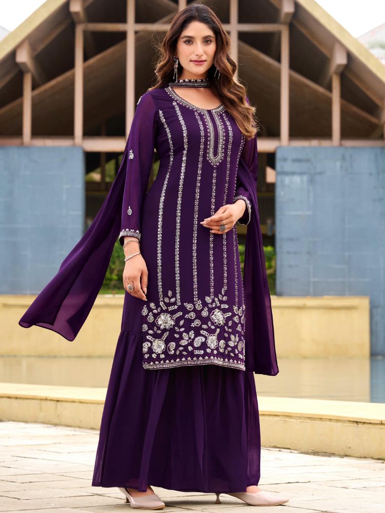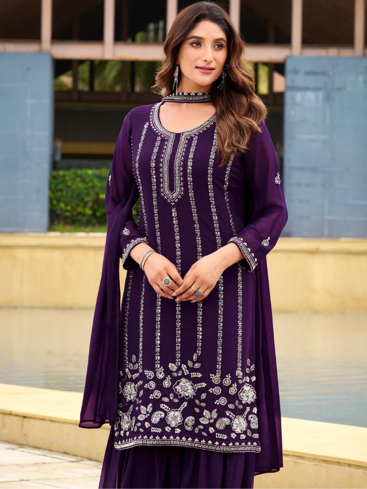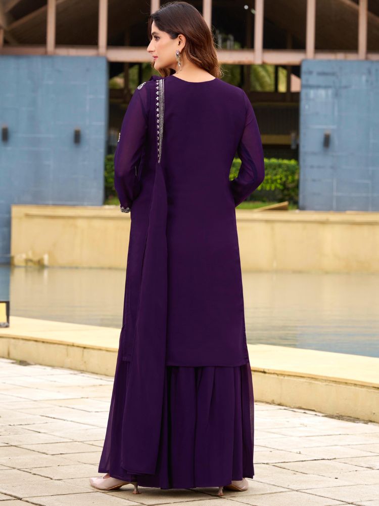 Purple Georgette Top Bottom Dupatta – HRT4884 | Purple